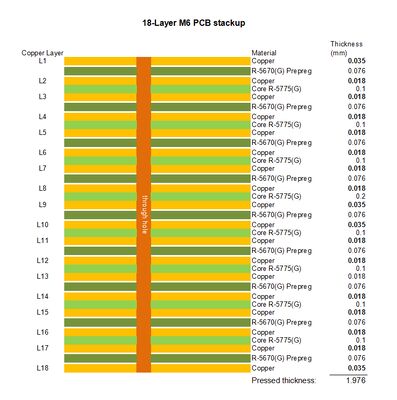 -HVLP 디자인: HVLP (Highly Volatile Low Profile) 기능은 휘발성 구성 요소를 감소시킵니다.라미네이션 도중 공허의 형성을 완화하고 간층 접합 품질을 향상시킵니다. 18층 고밀도 PCB 설계에 매우 중요합니다..